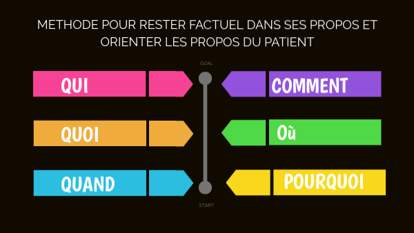 METHODE POUR RESTER FACTUEL DANS SES PROPOS ET ORIENTER LES PROPOS DU PATIENT