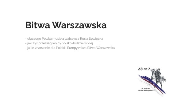 - dlaczego Polska musiała walczyć z Rosją Sowiecką- jaki był przebieg wojny polsko-bolszewickiej - jakie znaczenie dla Polski i Europy miała Bitwa Warszawska