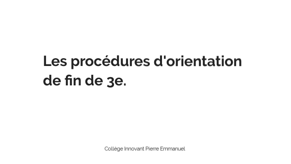 Procédures d'orientation fin de 3e
