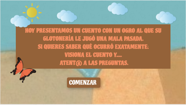 HOY PRESENTAMOS UN CUENTO CON UN OGRO AL QUE SU GLOTONERÍA LE JUGÓ UNA MALA PASADA.SI QUIERES SABER QUÉ OCURRÓ EXATAMENTE: VISIONA EL CUENTO Y..... ATENT@ A LAS PREGUNTAS.