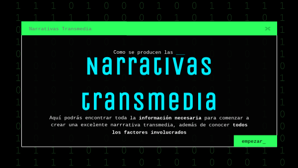 Aquí podrás encontrar todo lo necesario para comenzar en la creación de una narrativa transmedia