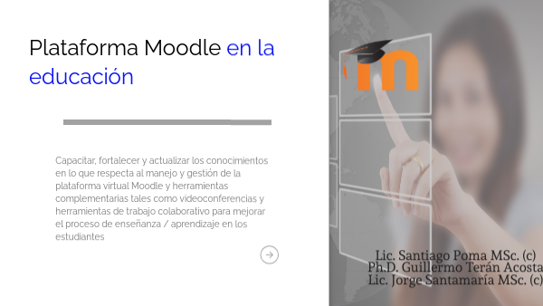 Capacitar, fortalecer y actualizar los conocimientos en lo que respecta al manejo y gestión de la plataforma virtual Moodle y herramientas complementarias tales como videoconferencias y herramientas de trabajo colaborativo para mejorar el proceso de enseñanza / aprendizaje en los estudiantes