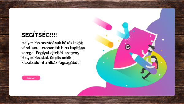 Helyesírás országának békés lakóit váratlanul lerohanták Hiba kapitány seregei. Foglyul ejtették szegény Helyesírásiakat. Segíts nekik kiszabadulni a hibák fogságából!