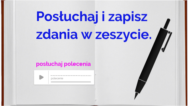 Zdania rozpoczynają się wielką literą. Imiona piszemy z wielkiej litery. Zdania kończą się kropką. Litery mieszczą się w liniaturze. Litery są kształtne. Wyrazy są zapisane poprawnie.
