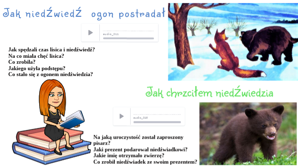 Jak spędzali czas lisica i niedźwiedź?Na co miała chęć lisica? Co zrobiła? Jakiego użyła podstępu? Co stało się z ogonem niedźwiedzia?