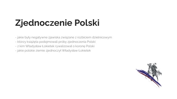 - jakie były negatywne zjawiska związane z rozbiciem dzielnicowym- którzy książęta podejmowali próby zjednoczenia Polski- z kim Władysław Łokietek rywalizował o koronę Polski - jakie polskie ziemie zjednoczył Władysław Łokietek