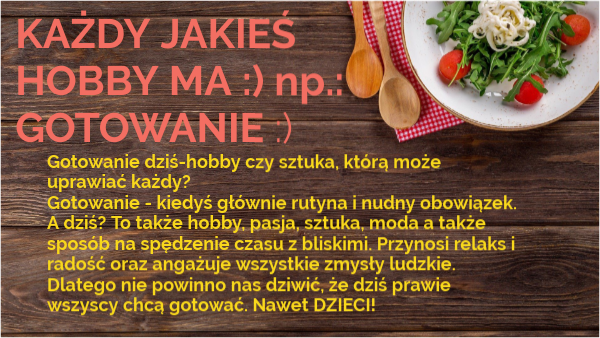 KAŻDY JAKIEŚ HOBBY MA :) np.: GOTOWANIE :)