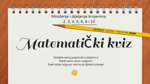 Kviz - množenje i dijeljenje brojevima 2, 3, 4, 5, 6, 8 i 10