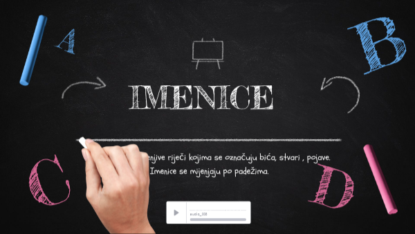 Imenice su promjenjive riječi kojima se označuju bića, stvari , pojave. Imenice se mijenjaju po padežima.