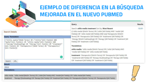 ejemplo de diferencia en la búsqueda mejorada en el nuevo pubmed