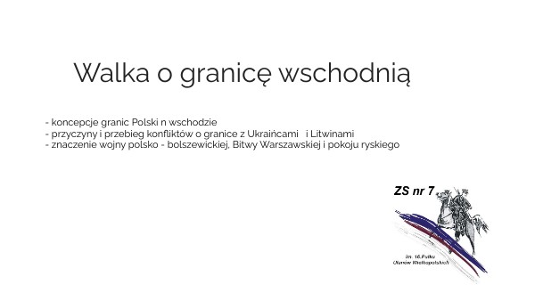 - koncepcje granic Polski n wschodzie - przyczyny i przebieg konfliktów o granice z Ukraińcami i Litwinami - znaczenie wojny polsko - bolszewickiej, Bitwy Warszawskiej i pokoju ryskiego