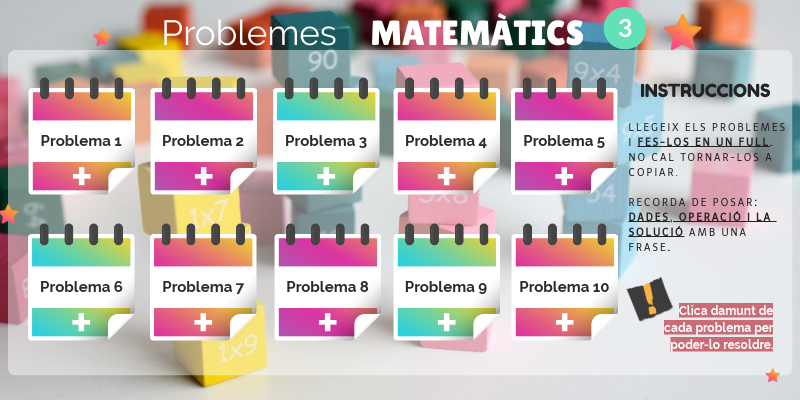 Clica damunt de cada problema per poder-lo resoldre.