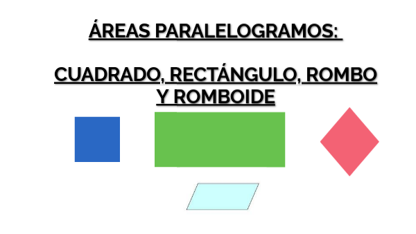 ÁREAS PARALELOGRAMOS: CUADRADO, RECTÁNGULO, ROMBO Y ROMBOIDE