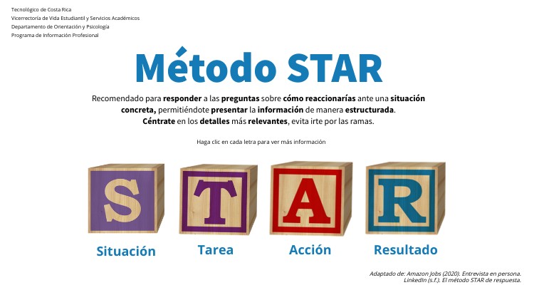 Adaptado de: Amazon Jobs (2020). Entrevista en persona.LinkedIn (s.f.). El método STAR de respuesta.