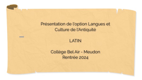 Présentation de l'option Langues et Culture de l'Antiquité LATIN Collège Bel Air - Meudon Rentrée 2024