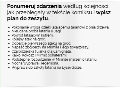 Ponumeruj zdarzenia według kolejności, jak przebiegały w tekście komiksu i wpisz plan do zeszytu.