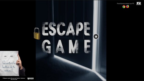 Ton défi se trouve quelquepart dans le décor. Fais glisser ta souris pour le trouver. Quand tu auras fini, note l'indice et sors de cette pièce pour continuer l'aventure