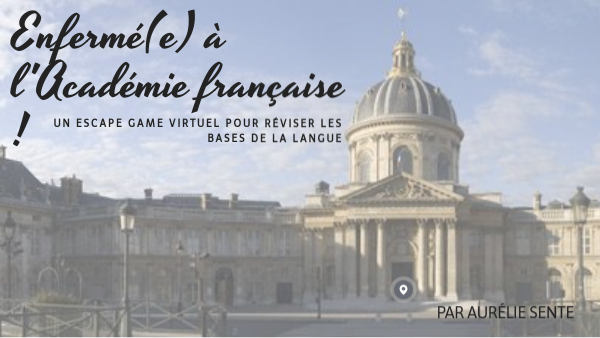Tu es en voyage scolaire à l'Académie française, la célèbre institution chargée de définir la langue par l'élaboration de son dictionnaire...Mais tu t'es perdu(e) ! Et tu sais que ton enseignante est capable de t'abandonner à Paris si tu n'es pas présent(e) à l'heure du rendez-vous !Trouve vite la sortie !