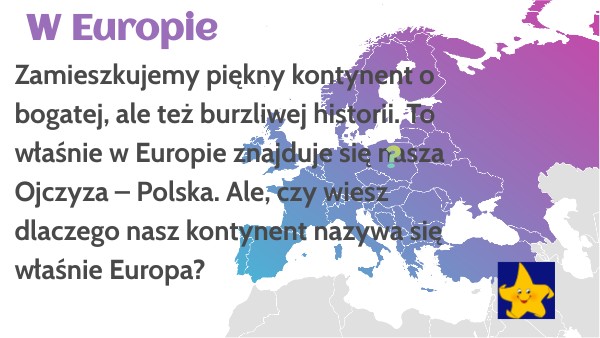 Zamieszkujemy piękny kontynent o bogatej, ale też burzliwej historii. To właśnie w Europie znajduje się nasza Ojczyza – Polska. Ale, czy wiesz dlaczego nasz kontynent nazywa się właśnie Europa?
