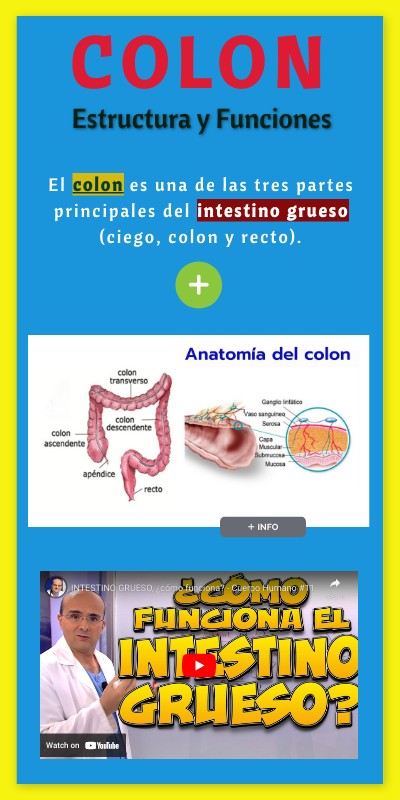 El colon es una de las tres partes principales del intestino grueso (ciego, colon y recto).