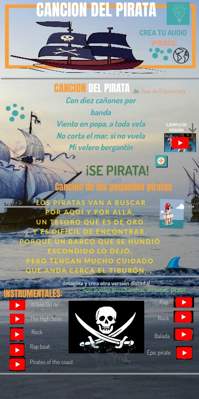 Los piratas van a buscar por aquí y por allá, un tesoro que es de oro y es difícil de encontrar. Porque un barco que se hundió escondido lo dejó, pero tengan mucho cuidado que anda cerca el tiburón...