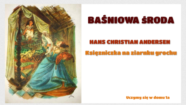 Witajcie w pierwszym dniu spotkania z Panem Andersenem i jego baśniami. Zapraszam Was do wysłuchania bajki, która powstała na podstawie oryginalnej baśni Andersena "Księżniczka na ziarnku grochu". Zamknijcie oczy i posłuchajcie. Kliknijcie w obrazek.