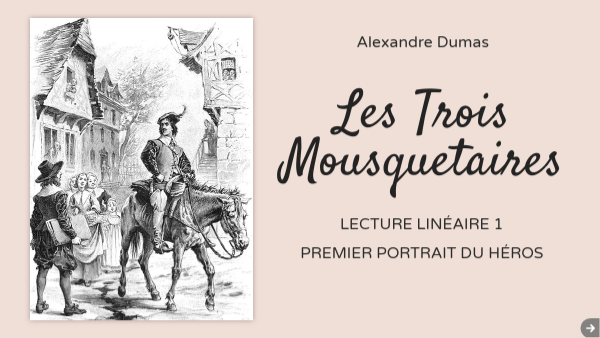 Arrivé là, chacun put reconnaître la cause de cette rumeur. Un jeune homme… — traçons son portrait d’un seul trait de plume : — figurez-vous don Quichotte à dix-huit ans ; don Quichotte décorcelé, sans haubert et sans cuissard ; don Quichotte revêtu d’un pourpoint de laine, dont la couleur bleue s’était transformée en une nuance insaisissable de lie de vin et d’azur céleste. Visage long et brun ; la pommette des joues saillante, signe d’astuce ; les muscles maxillaires énormément développés, indice infaillible où l’on reconnaît le Gascon, même sans béret, et notre jeune homme portait un béret orné d’une espèce de plume ; l’œil ouvert et intelligent ; le nez crochu, mais finement dessiné ; trop grand pour un adolescent, trop petit pour un homme fait, et qu’un œil exercé eût pris pour un fils de fermier en voyage, sans la longue épée qui, pendue à un baudrier de peau, battait les mollets de son propriétaire, quand il était à pied, et le poil hérissé de sa monture quand il était à cheval. Car notre jeune homme avait une monture, et cette monture était même si remarquable qu’elle fut remarquée : c’était un bidet du Béarn, âgé de douze ou quatorze ans, jaune de robe, sans crins à la queue, mais non pas sans javarts aux jambes, et qui, tout en marchant la tête plus bas que les genoux, ce qui rendait inutile l’application de la martingale, faisait encore galamment ses huit lieues par jour. Malheureusement les qualités cachées de ce cheval étaient si bien cachées sous son poil étrange et son allure incongrue, que, dans un temps où tout le monde se connaissait en chevaux, l’apparition du susdit bidet à Meung, où il était entré, il y avait un quart d’heure à peu près, par la porte de Beaugency, produisit une sensation dont la défaveur rejaillit jusqu’à son cavalier.