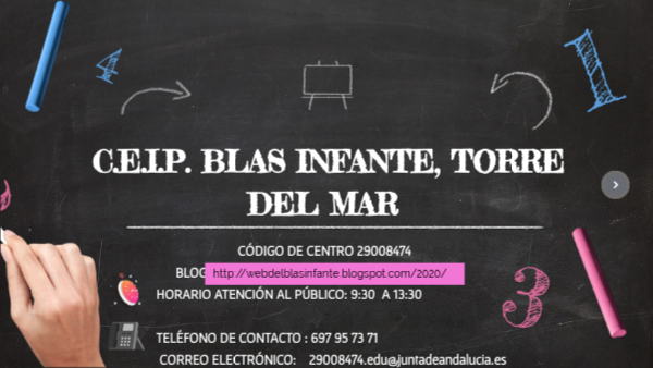 CÓDIGO DE CENTRO 29008474 BLOG: HORARIO ATENCIÓN AL PÚBLICO: 9:30 A 13:30 TELÉFONO DE CONTACTO : 697 95 73 71 CORREO ELECTRÓNICO: 29008474.edu@juntadeandalucia.es