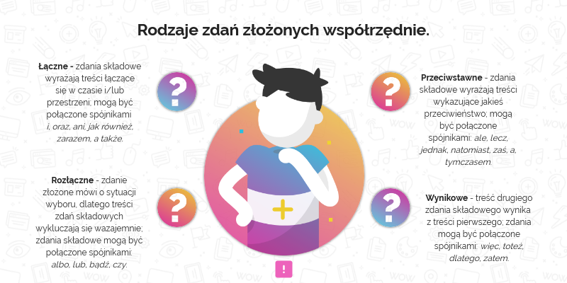 Wynikowe - treść drugiego zdania składowego wynika z treści pierwszego; zdania mogą być połączone spójnikami: więc, toteż, dlatego, zatem.