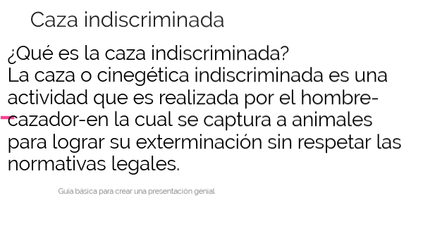 ¿Qué es la caza indiscriminada?La caza o cinegética indiscriminada es una actividad que es realizada por el hombre-cazador-en la cual se captura a animales para lograr su exterminación sin respetar las normativas legales. ¿Que desencadena la cacería indiscriminada de carnívoros en un ecosistema? La caza de animales en un ecosistema altera la cadena alimentaria que se forma dentro de él y hace que todo el ecosistema altere su equilibrio y, por tanto, funcione deficientemente. Es decir, la caza influye tanto en los animales que mueren, como en los que no: plantas, presas y depredadores.