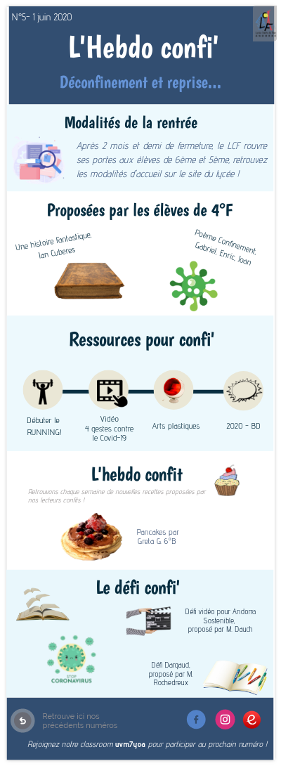 Après 2 mois et demi de fermeture, le LCF rouvre ses portes aux élèves de 6ème et 5ème, retrouvez les modalités d'accueil sur le site du lycée !