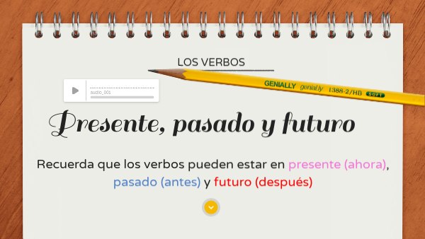Recuerda que los verbos pueden estar en presente (ahora), pasado (antes) y futuro (después)