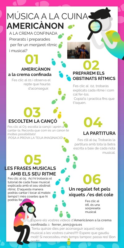 Espere els vostres vídeos d'Americànon a la crema confinada a: ferrer_ann@gva.es Teniu quinze dies per aconseguir aquest repte musical a les vostres cuines!!!!! Espere que gaudiu molt! Si necessiteu més temps tampoc passa res! Bon profit!