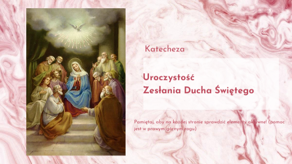10 dni po wniebowstąpieniu, a 50 dni po zmartwychwstaniu Syn Boży, jak obiecał, przysłał ludziom Pocieszyciela - Ducha Świętego, który od tej pory jest z każdym z nas od chrztu świętego.