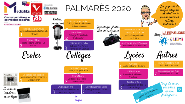 Gagnants de la phase académique du concours Médiatiks 2020. Académie Orléans-Tours