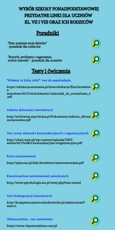 WYBÓR SZKOŁY PONADPODSTAWOWEJPrzydatne linki dla uczniów kl. VII i VIII oraz ich rodziców