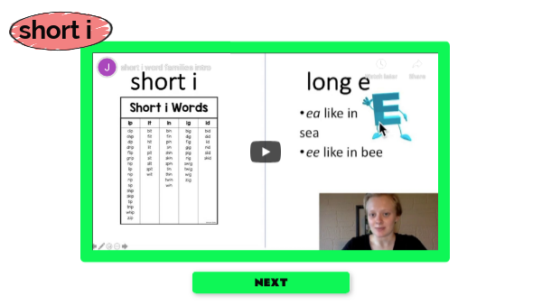Listen to the short i sound. Practice saying it out loud.