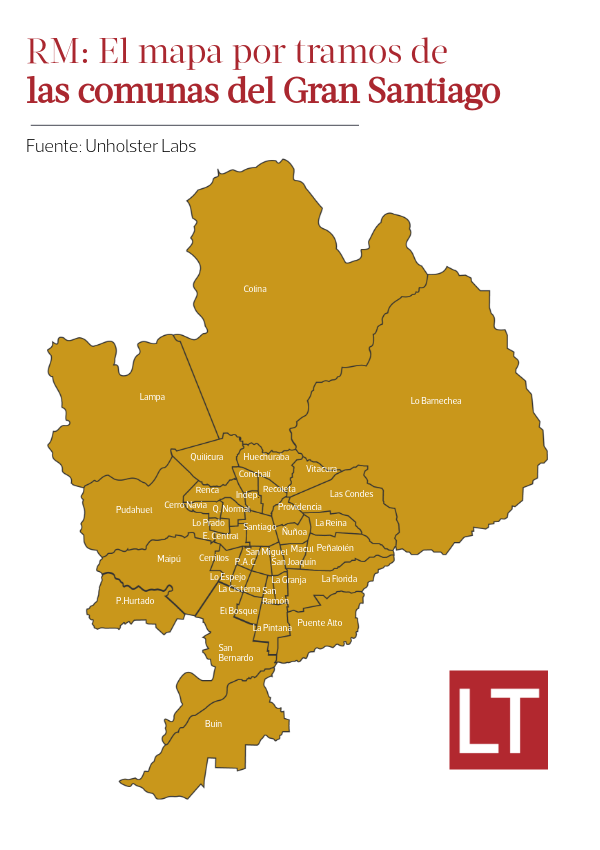 RM: El mapa por tramos de las comunas del Gran Santiago