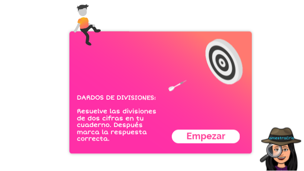 DARDOS DE DIVISIONES: Resuelve las divisiones de dos cifras en tu cuaderno. Después marca la respuesta correcta.