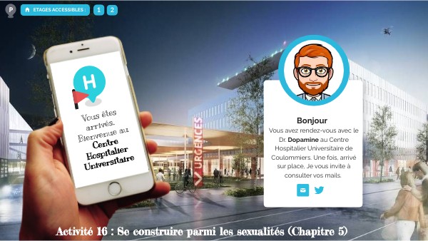Vous avez rendez-vous avec le Dr. Dopamine au Centre Hospitalier Universitaire de Coulommiers. Une fois, arrivé sur place, Je vous invite à consulter vos mails.