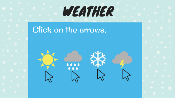 1. Sunny2. partly cloudy 3. cloudy 4. windy 5. rainy 6. snowy 7.stormy
