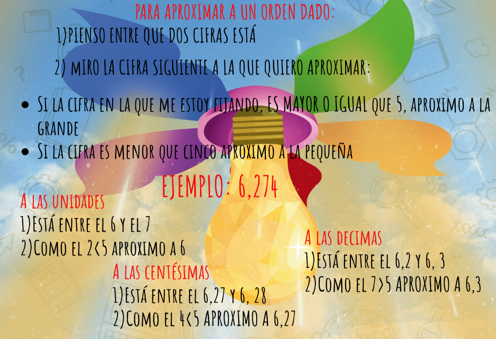 A las unidades 1)Está entre el 6 y el 7 2)Como el 2<5 aproximo a 6
