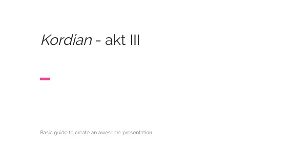 KORDIAN Pośród szlachetnych Kordian zwycięzcą zostanie. Wy oblicza, on myśli i serce pokaże. Kordian ma wartę w zamku tej nocy… słyszycie? Kordian ma wartę w zamku w nocy…