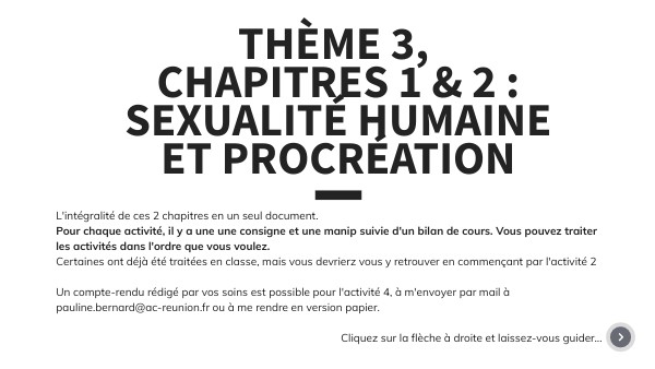 Thème 3, chapitres 1 & 2 : Sexualité humaine et procréation