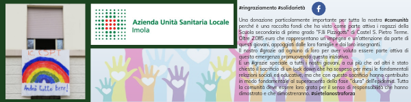 #ringraziamento #solidarietà Una donazione particolarmente importante per tutta la nostra #comunità perché è una raccolta fondi che ha visto come parte attiva i ragazzi della Scuola secondaria di primo grado "F.lli Pizzigotti" di Castel S. Pietro Terme. Oltre 2.085 euro che rappresentano un impegno e un'attenzione da parte di questi giovani, appoggiati dalle loro famiglie e dai loro insegnanti. Il nostro #grazie ad ognuno di loro per aver voluto essere parte attiva di questa emergenza promuovendo questa iniziativa. E un #grazie speciale a tutti i nostri giovani, a cui più che ad altri è stato chiesto il sacrificio di un lock down che ha sospeso per mesi le fondamentali relazioni sociali ed educative, ma che con questo sacrificio hanno contribuito in modo fondamentale al superamento della fase "dura" dell'epidemia. Tutta la comunità deve essere loro grata per il senso di responsabilità che hanno dimostrato e che dimostreranno. #sietelanostraforza