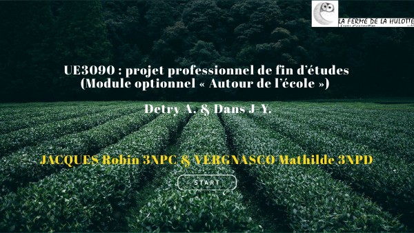 UE3090 : projet professionnel de fin d’études (Module optionnel « Autour de l’école ») Detry A. & Dans J-Y. JACQUES Robin 3NPC & VERGNASCO Mathilde 3NPD