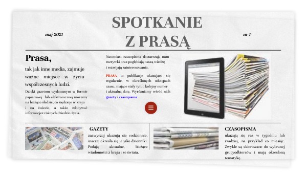Dzięki gazetom wydawanym w formie papierowej lub elektronicznej możemy na bieżąco śledzić, co siędzieje w kraju i na świecie, a także zdobywać informacjez różnych dziedzin życia.