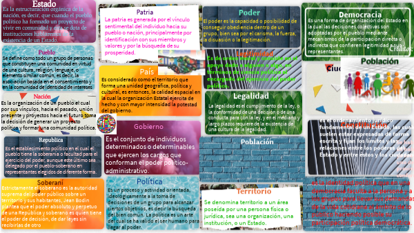 Es la estructuración orgánica de la nación, es decir, que cuando el pueblo político ha formado un proyecto de vivir en comunidad y esta se dota de instituciones hablaremos de la existencia de un Estado.