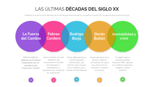 Establecer la secuencia de los regímenes de las dos décadas finales del siglo XX, sus políticas económicas y la respuesta de la movilización social