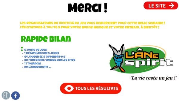 les organisateurs du meeting du jeu vous remercient pour cette belle semaine ! félicitations à tou·te·s pour votre bonne humeur et votre entrain. à bientôt !